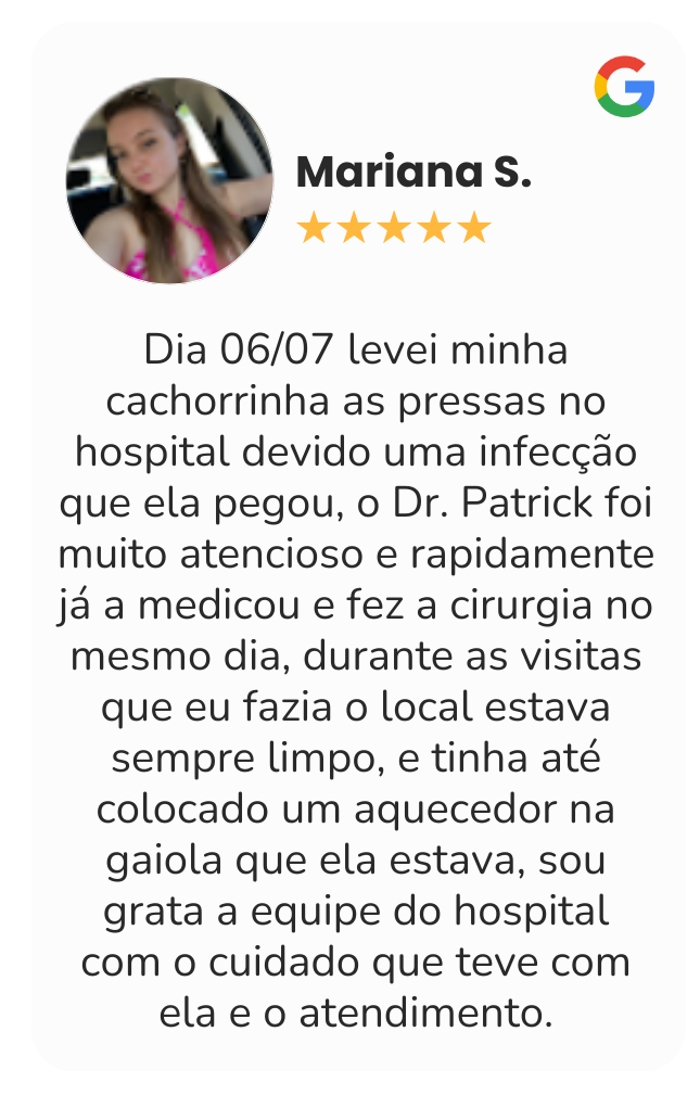 Temos uma equipe pronta para acolher, diagnosticar e cuidar do seu pet com toda a atenção que ele merece. Desde uma consulta simples até uma emergência, conte conosco.